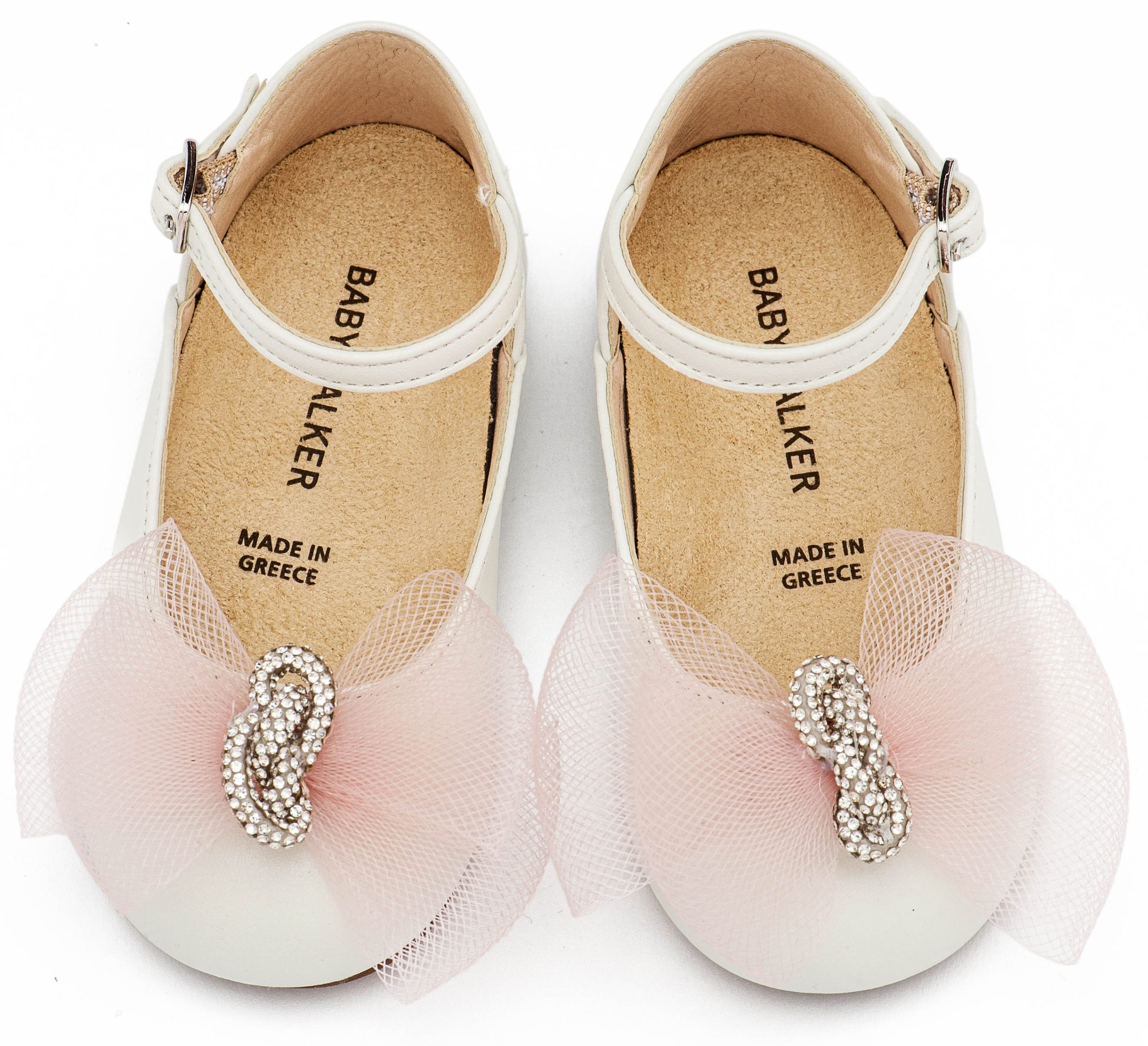 Δερμάτινο Γαλλικό Γοβάκι με Χειροποιητο Φιόγκο Κρένα και Στρας σε Εκρού Ροζ Χρώμα