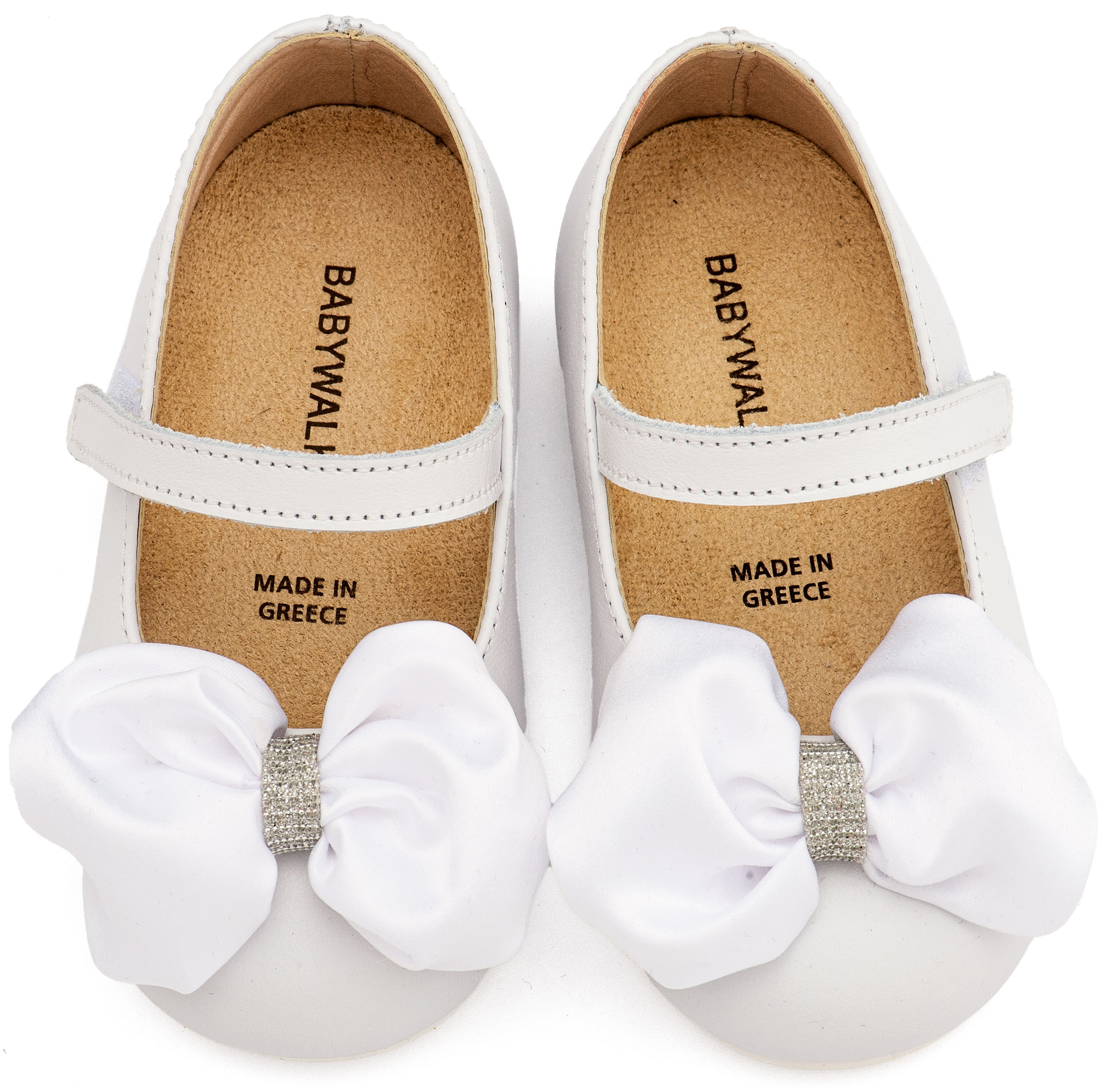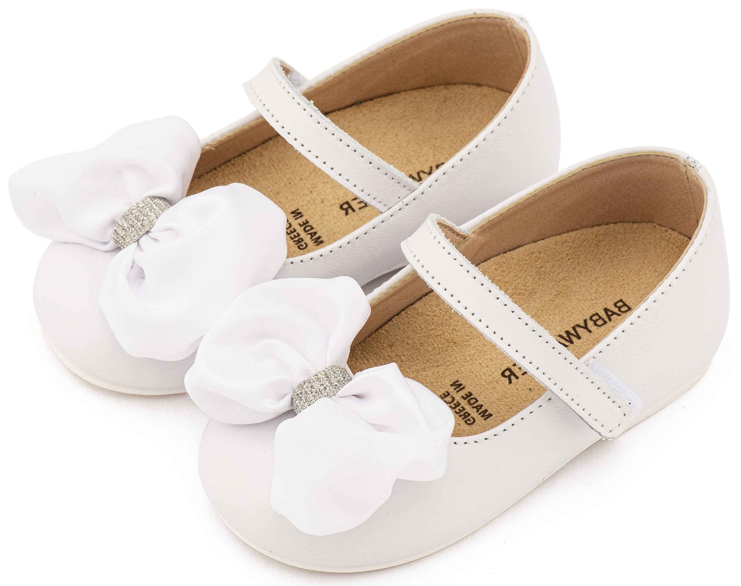 Δερμάτινο Γοβάκι Μονή Μπαρέτα Χρατς με Σατέν Χειροποίητο Φιόγκο σε Λευκό Χρώμα