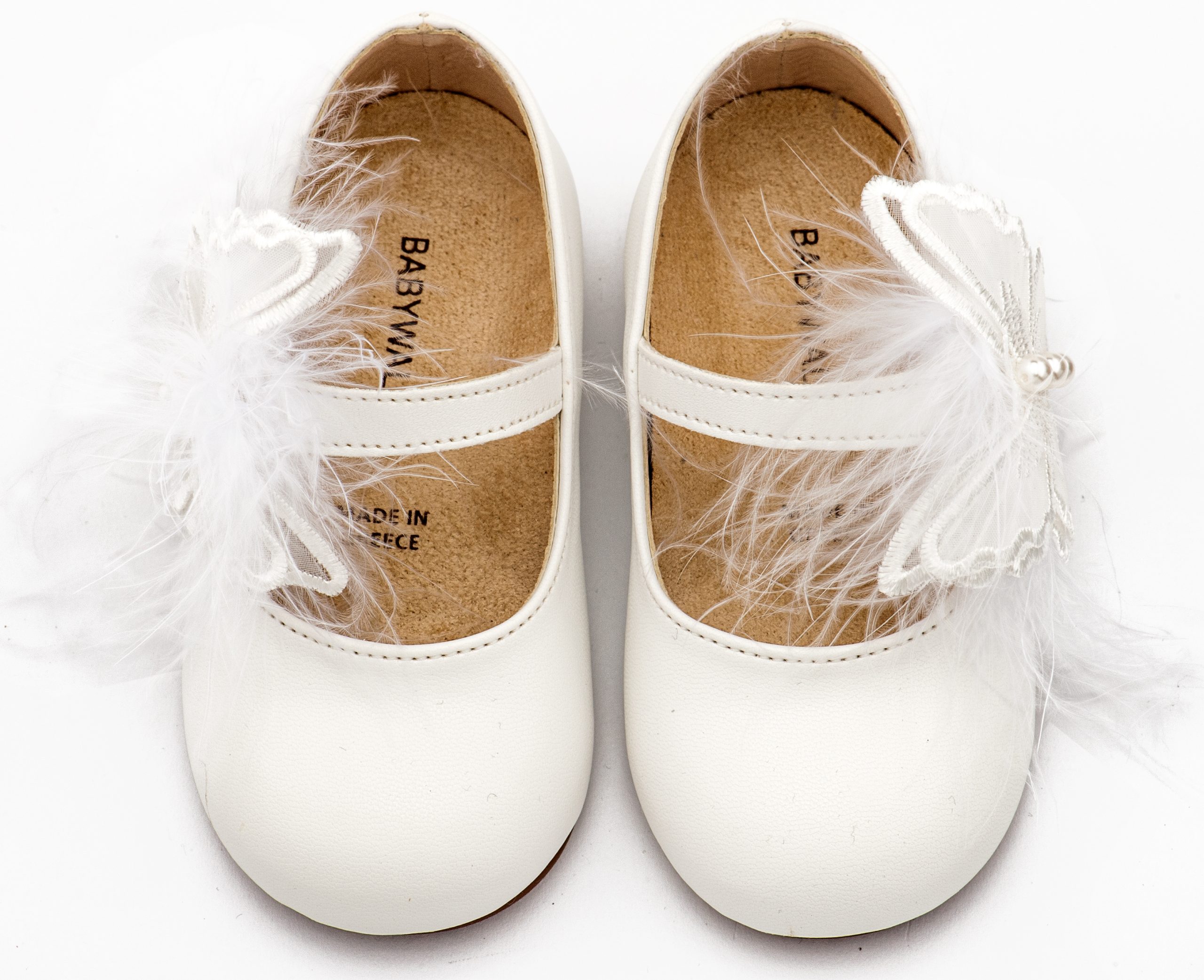 Δερμάτινο Γοβάκι Μονή Μπαρέτα με Χειροποίητο Διακοσμητικό Πεταλούδα και Πούπουλα σε Λευκό Χρώμα