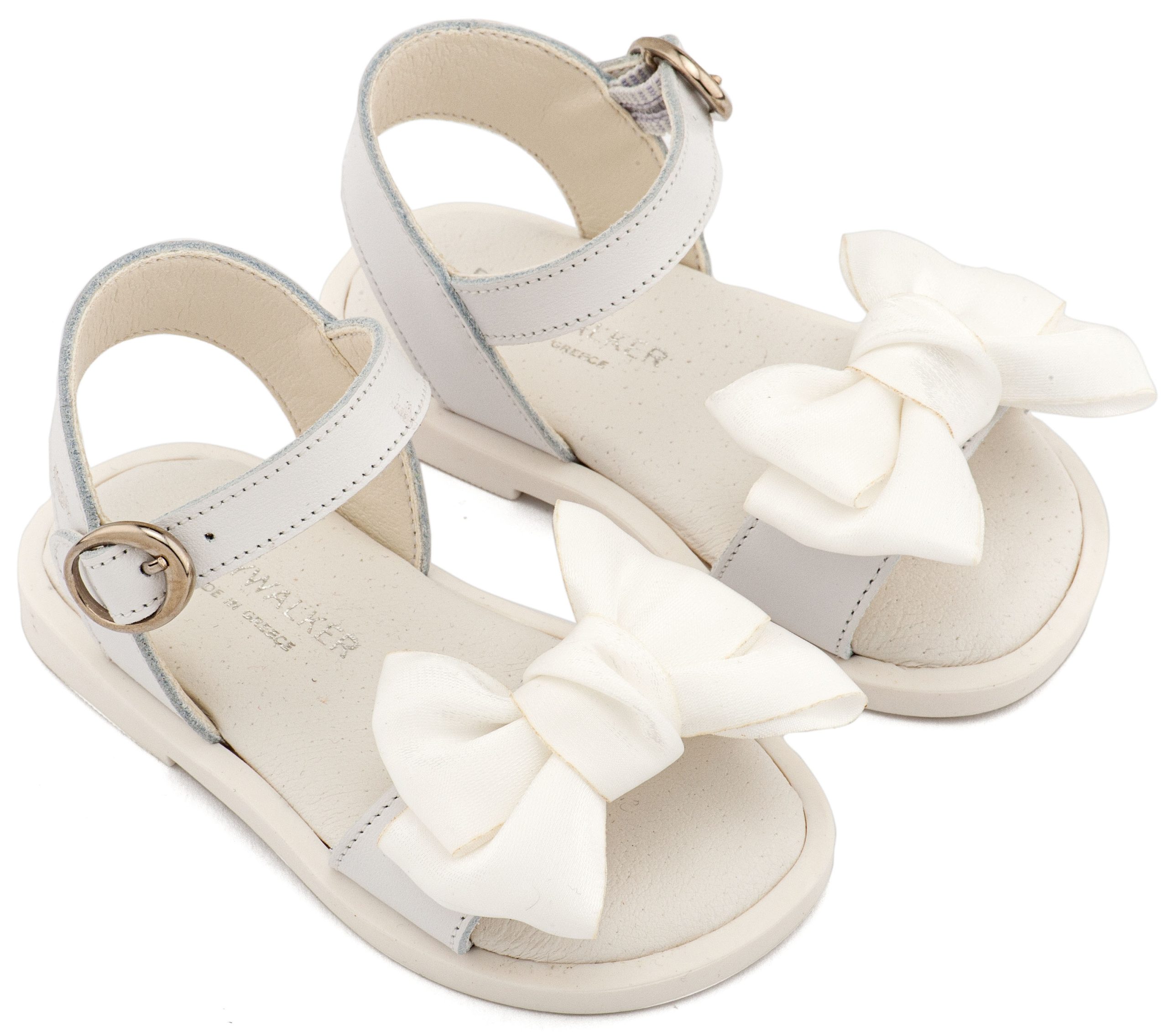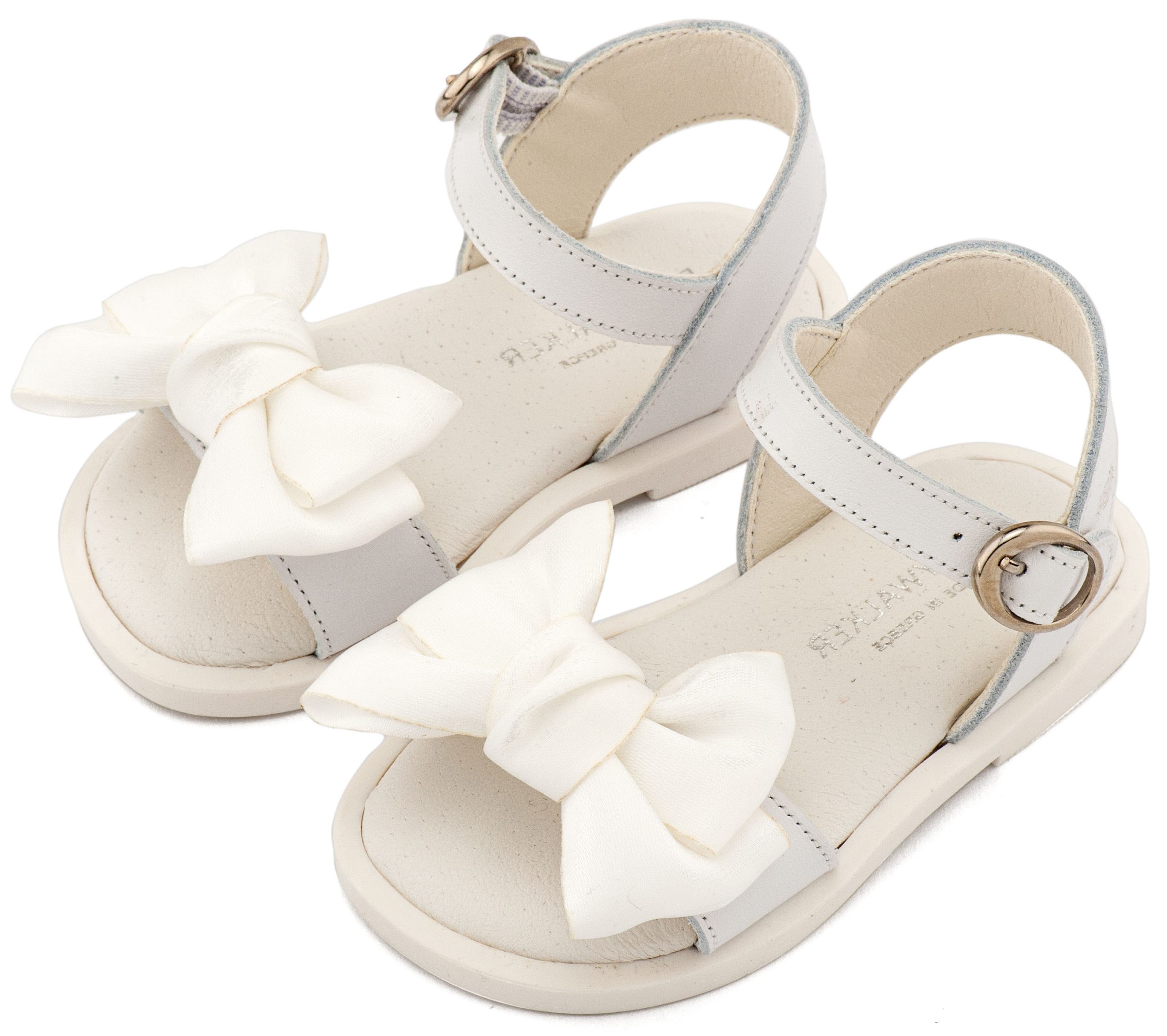 Δερμάτινο Πέδιλο Διακοσμημένο με Χειροποίητο Φιόγκο Οργάντζας και Πέρλες σε Λευκό Χρώμα