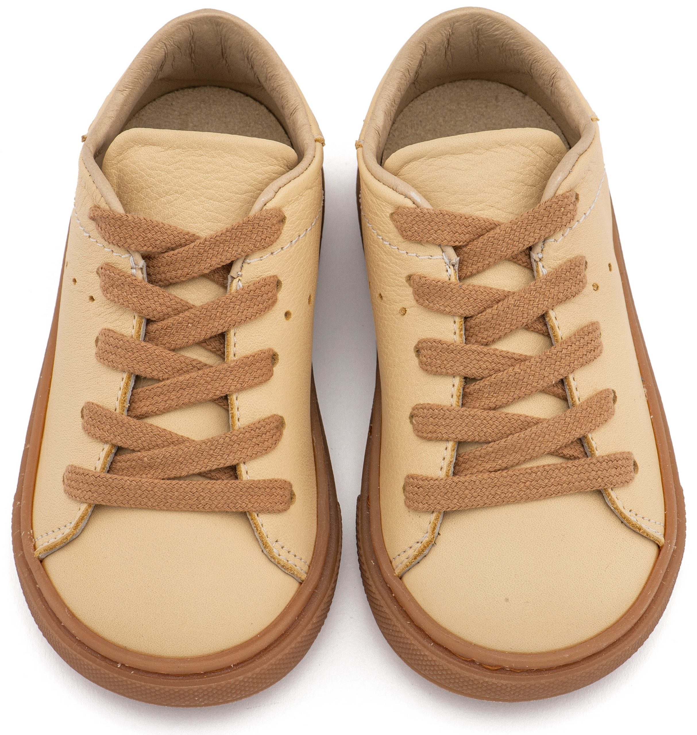 Δετό Δερμάτινο Sneaker από Δέρμα Νάπα σε Καλαμποκί Χρώμα με Κορδόνι Ταμπά