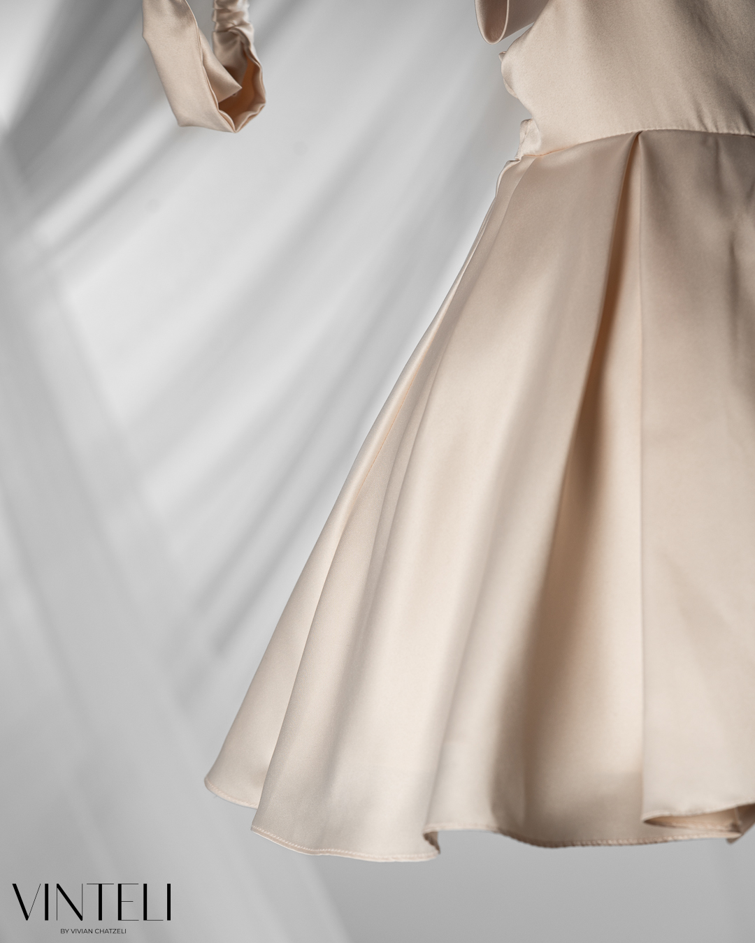 Βαπτιστικό φόρεμα σε μπεζ απόχρωση που αποπνέει κομψότητα και διακριτική πολυτέλεια. Το μπούστο είναι λιτό με ασύμμετρο κόψιμο στον έναν ώμο που χαρίζει μια μοντέρνα και ιδιαίτερη αισθητική, ενώ ο σατέν εντυπωσιακός φιόγκος σδίνει χαρακτήρα και ξεχωρίζει διακριτικά. Η φούστα ανοίγει σε πλούσια γραμμή, δημιουργώντας όμορφη κίνηση και όγκο. Συνοδεύεται από ασορτί κορδέλα μαλλιών, ολοκληρώνοντας αρμονικά την εμφάνιση. Μια κομψή και ξεχωριστή επιλογή για βάπτιση, ιδανική για ιδιαίτερες και αξέχαστες στιγμές.