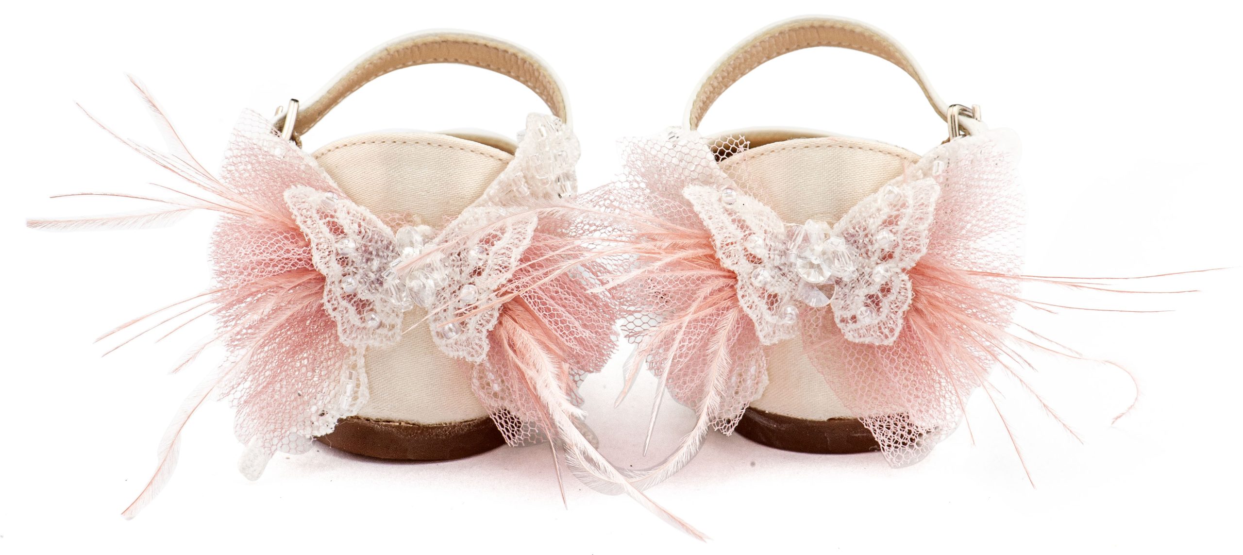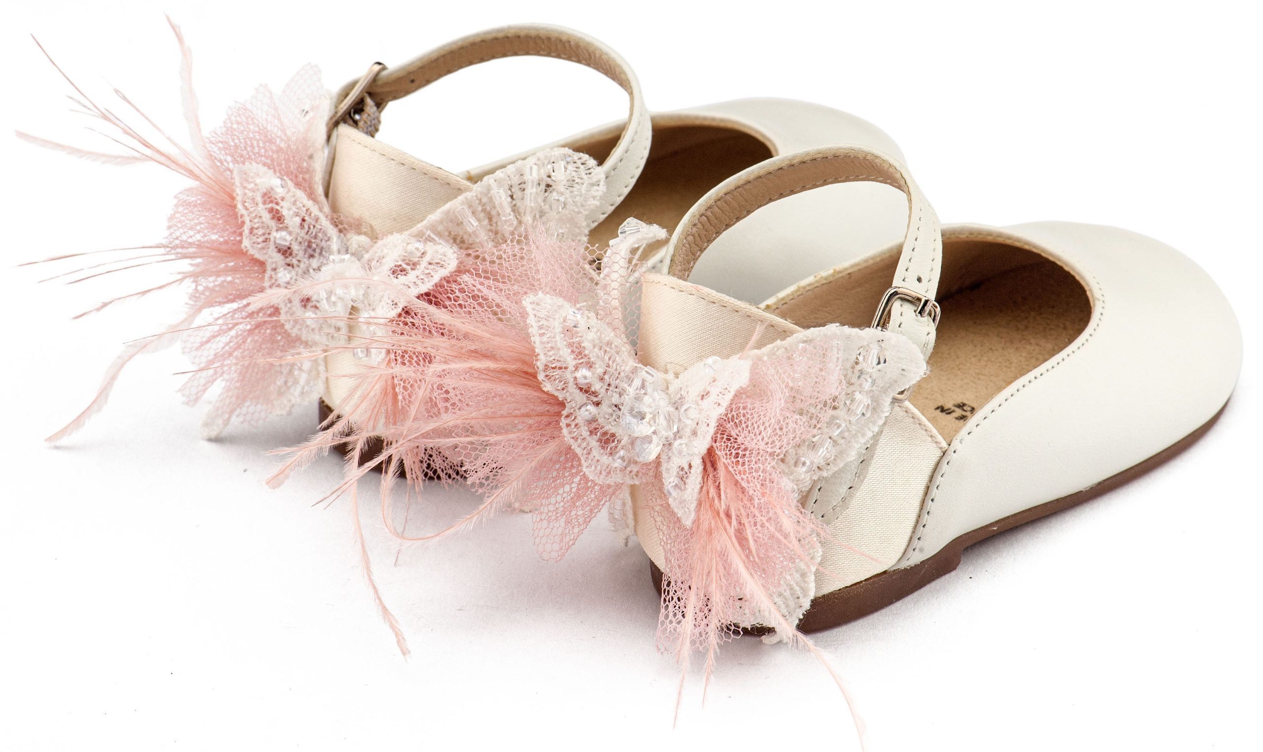 Γαλλικό Γοβάκι με Διακοσμημένη Φτέρνα με Υφασμάτινη Πεταλούδα σε Εκρού Ροζ Χρώμα