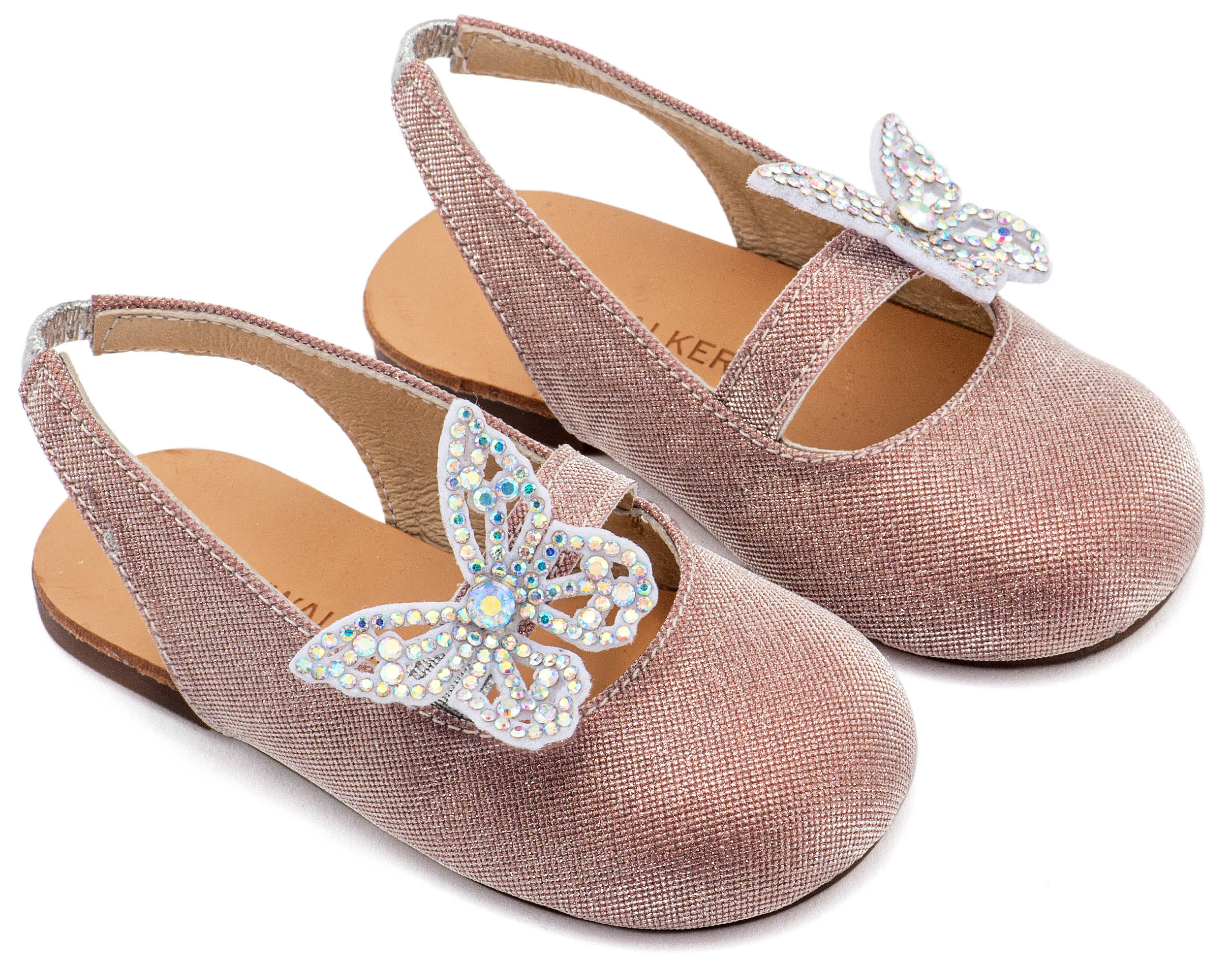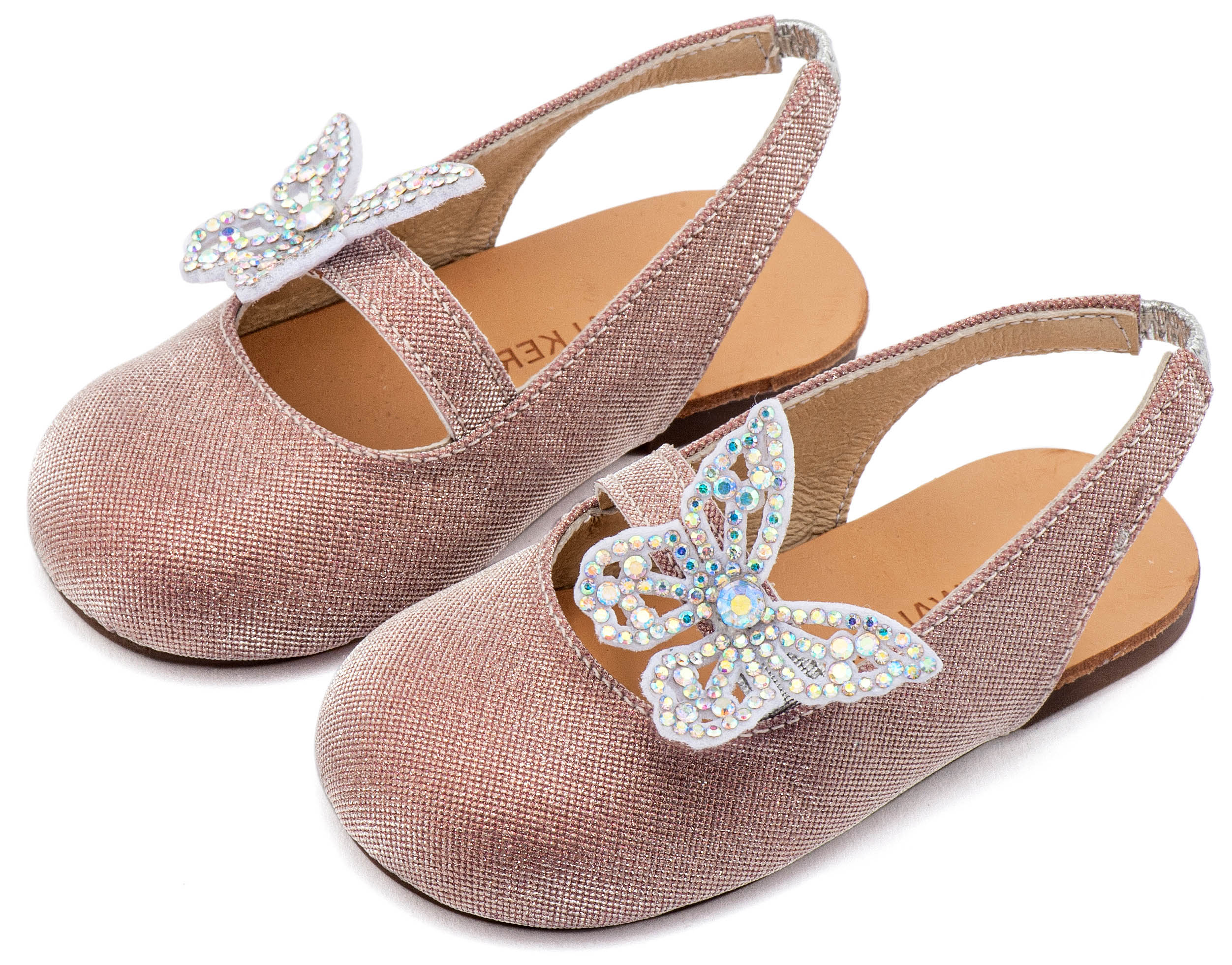 Υφασμάτινο Γοβάκι Μονή Μπαρέτα Χρατς με Στρασένια Πεταλούδα σε Ροζ Χρώμα