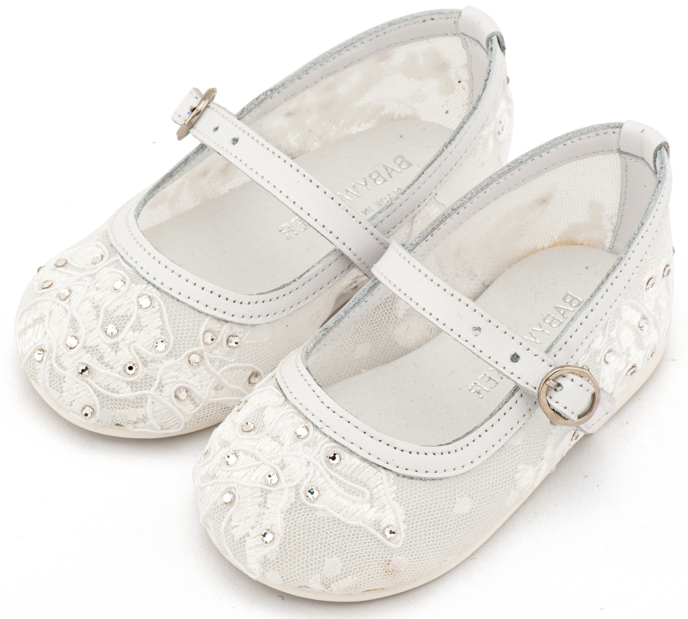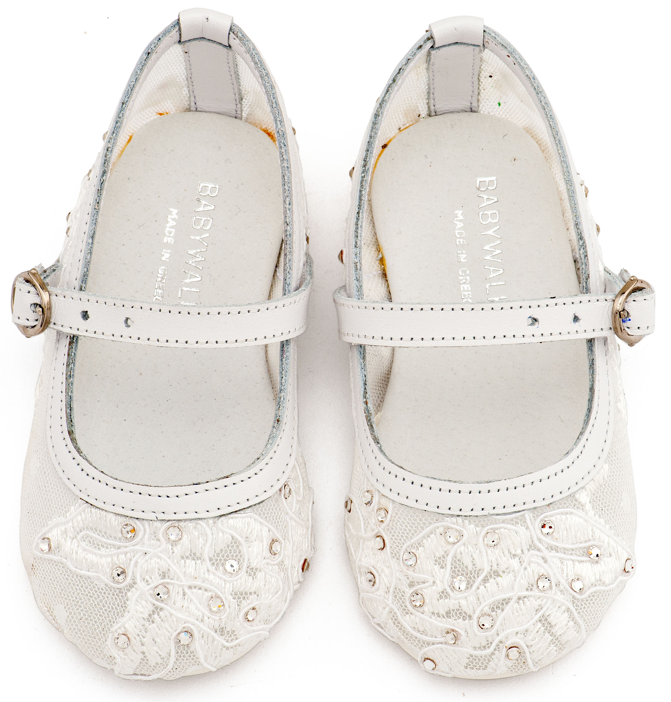 Γοβάκι απο Ύφασμα Φιλντιρέ Δαντέλα με Δερμάτινες Λεπτομέρειες σε Λευκό Χρώμα
