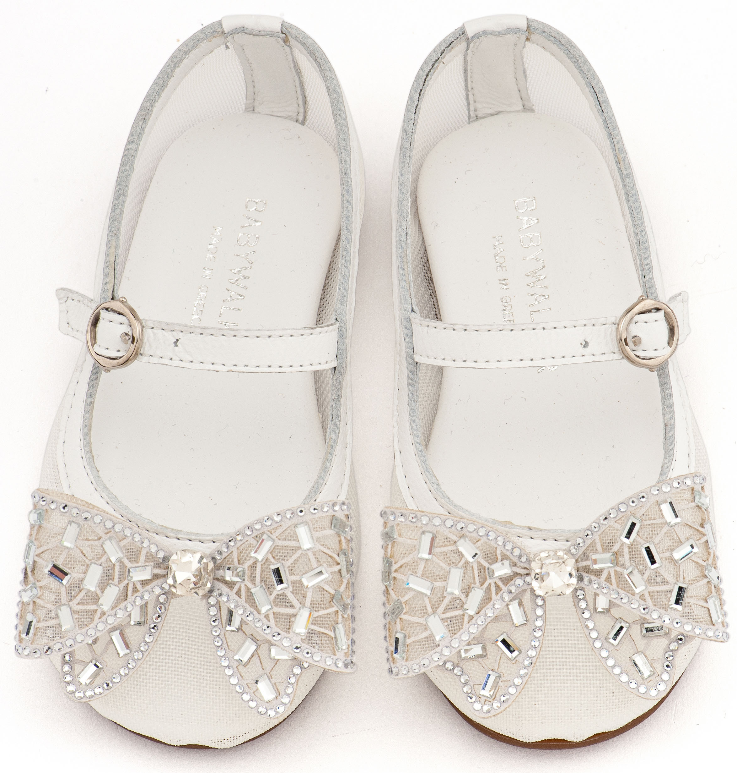 Γοβάκι απο Ύφασμα Φιλντιρέ με Δερμάτινες Λεπτομέρειες και Φιόγκο Στρας σε Λευκό Χρώμα