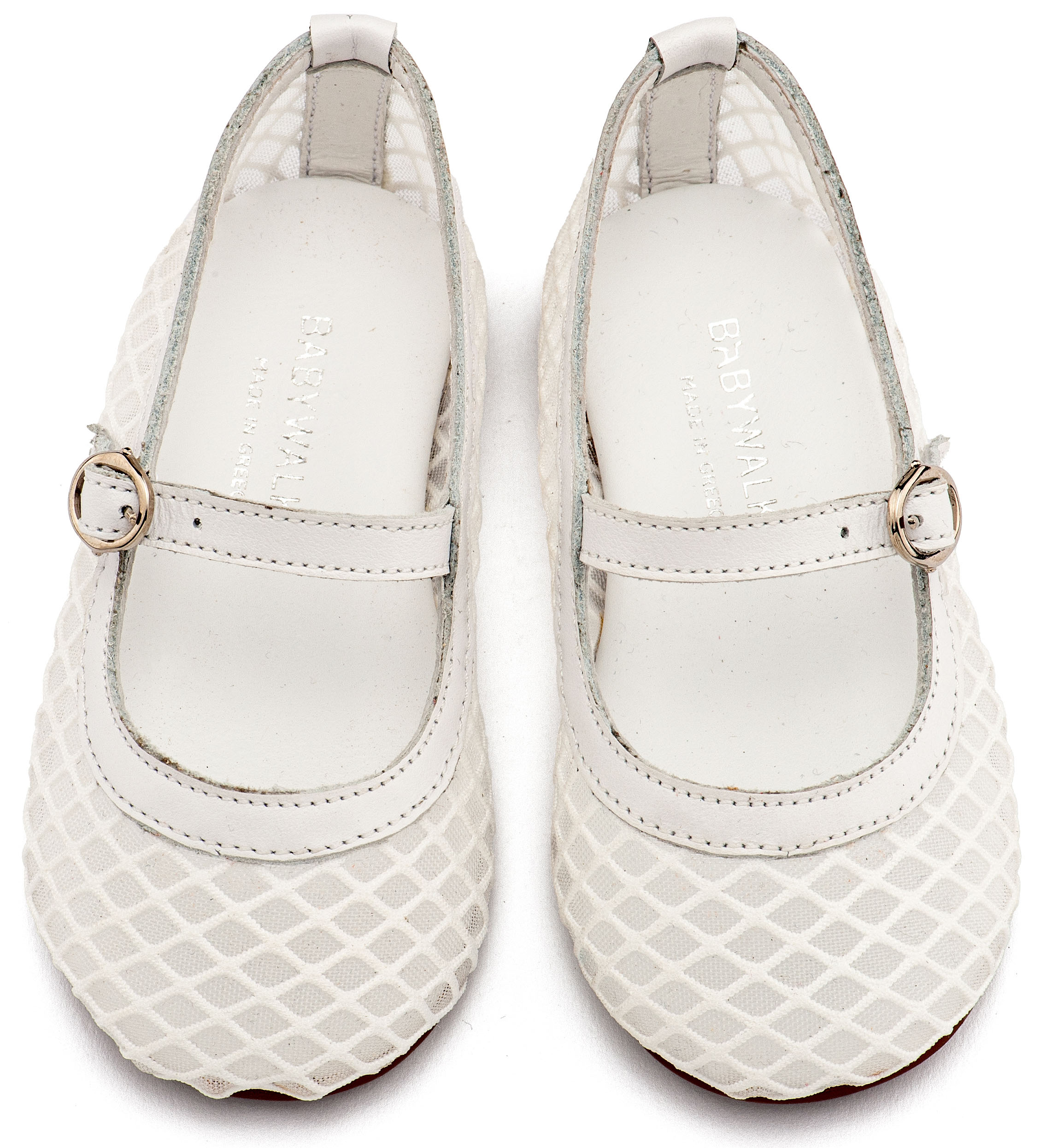 Γοβάκι Μονή Μπαρέτα Χρατς από Ύφασμα Φιλντιρέ Δίχτυ με Δερμάτινες Λεπτομέρειες σε Λευκό Χρώμα