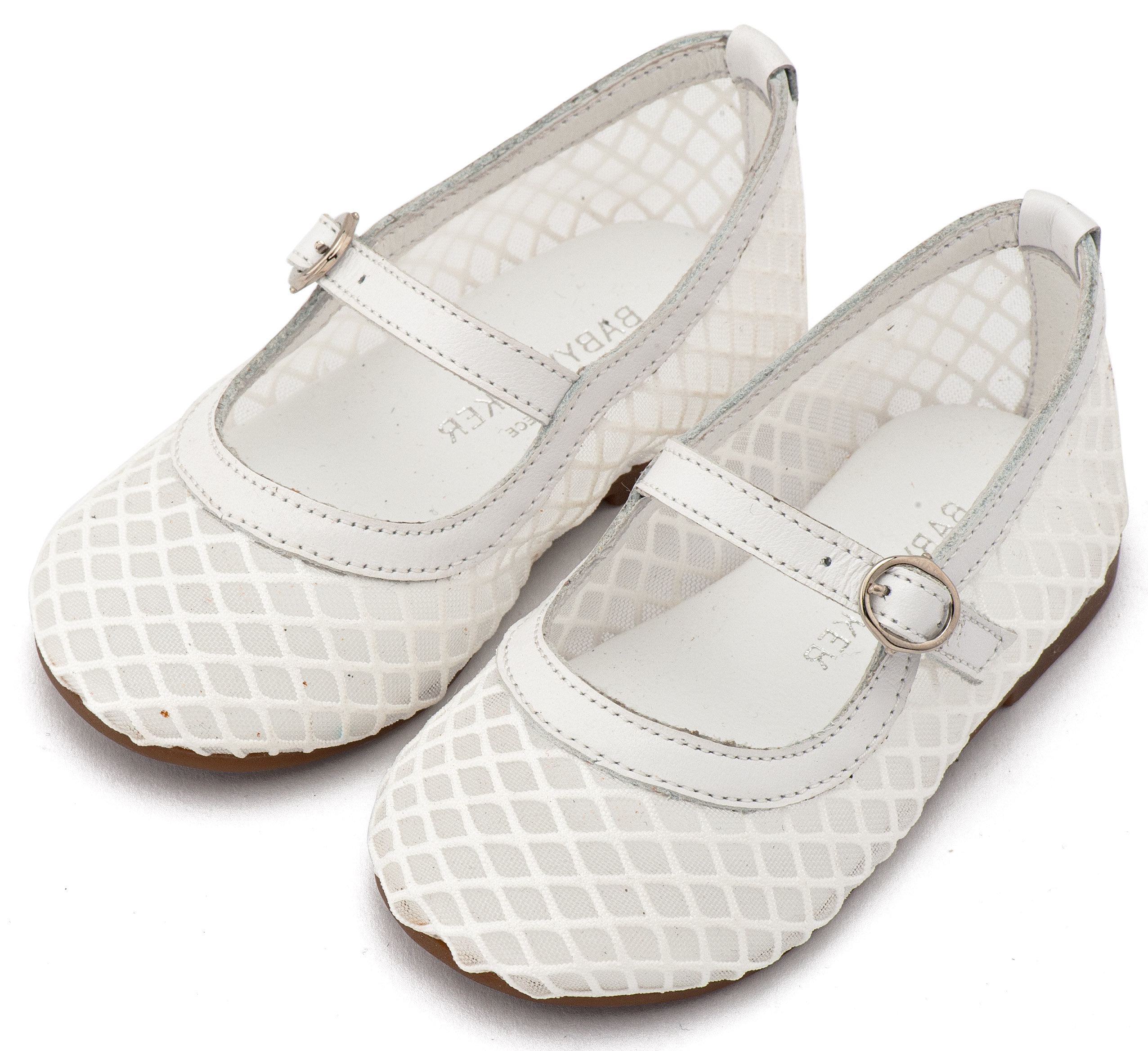 Γοβάκι Μονή Μπαρέτα Χρατς από Ύφασμα Φιλντιρέ Δίχτυ με Δερμάτινες Λεπτομέρειες σε Λευκό Χρώμα