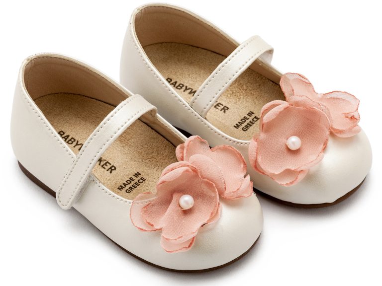 Γοβάκι Μονή Μπαρέτα Χρατς με Λουλούδια Οργάντζας και Πέρλα BW4868 Εκρού Ροζ