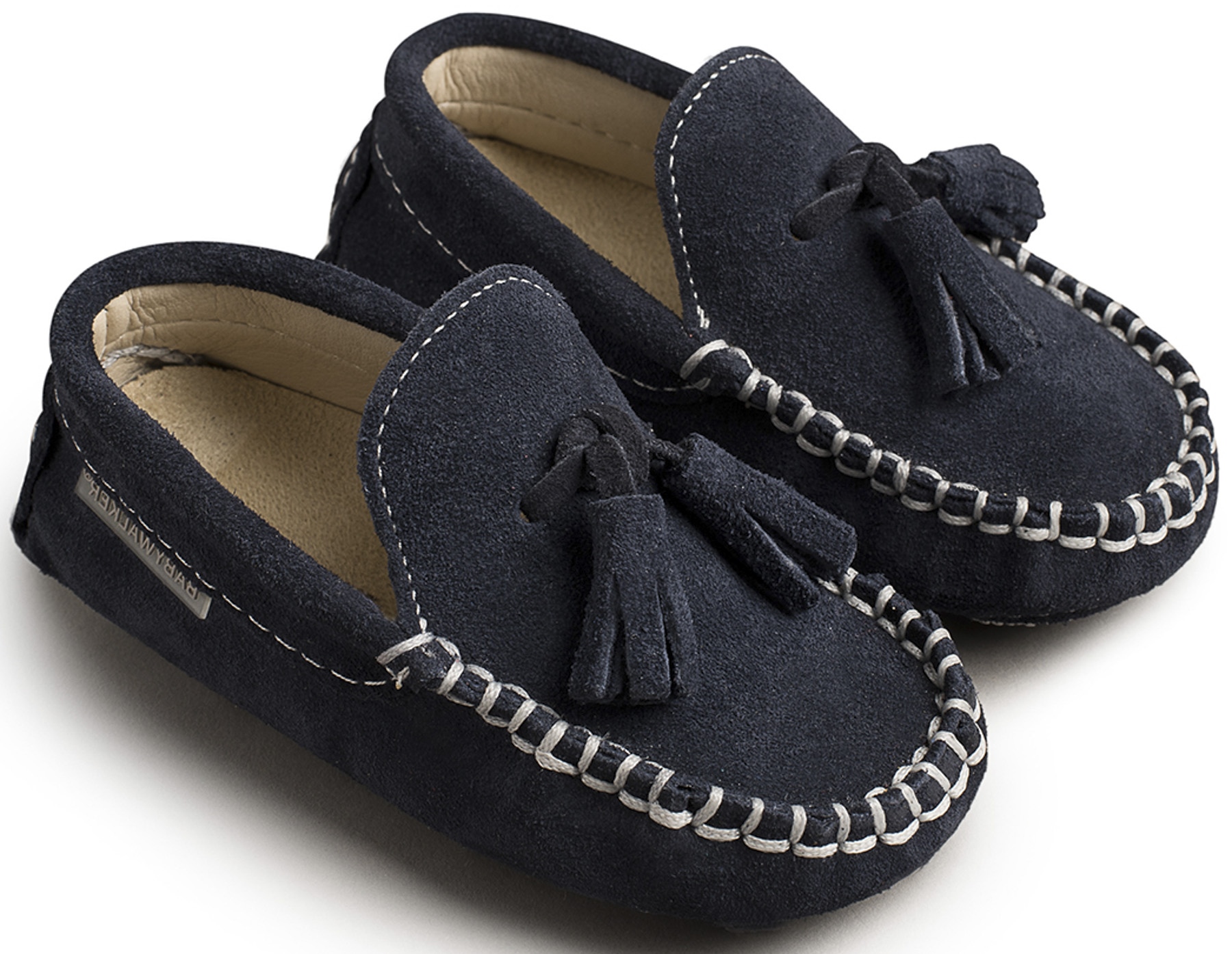 Καστόρινο Μοκασίνι με Φουντάκια από Δέρμα Κρούτα Suede σε Μπλε Χρώμα