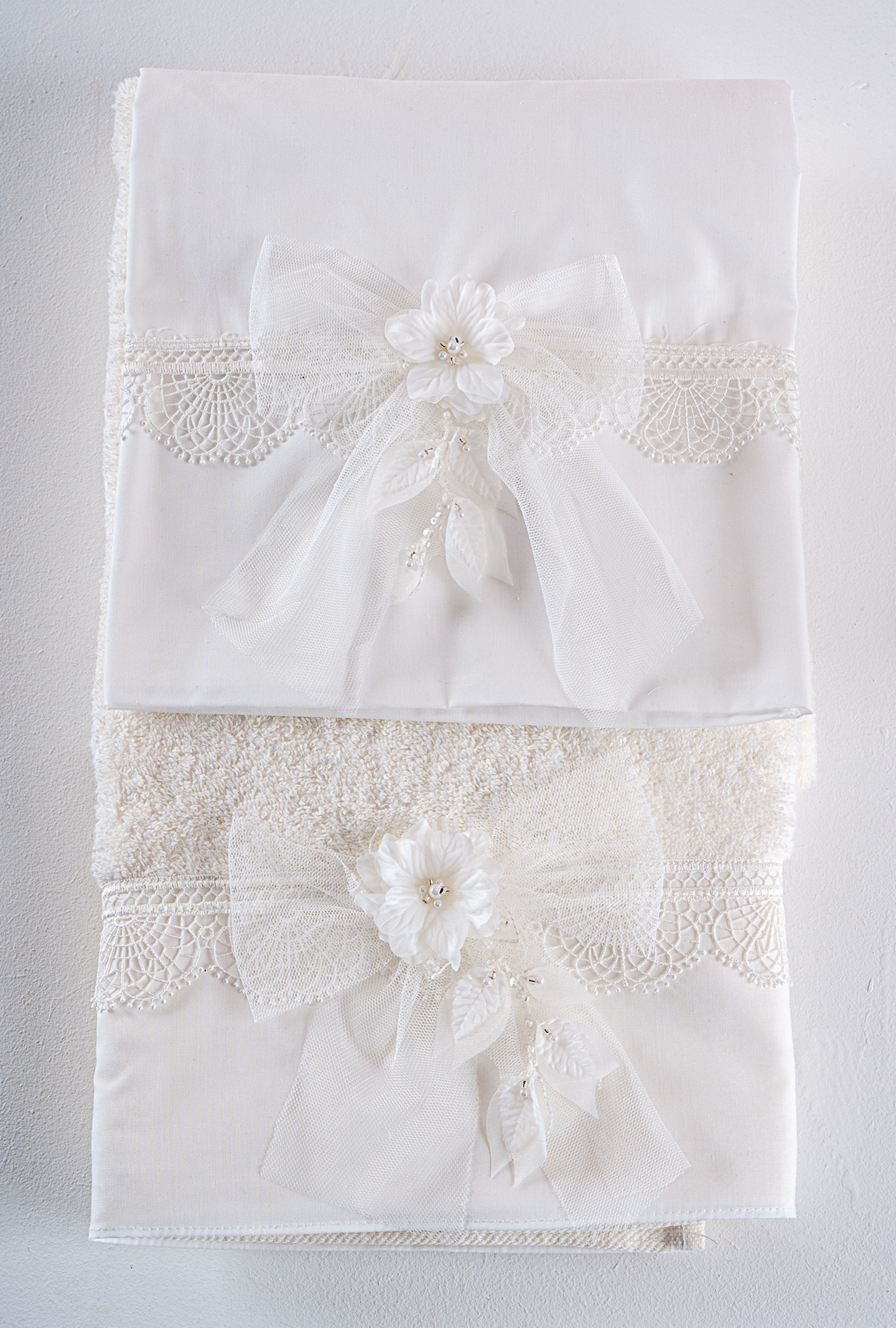 Σετ λαδόπανα Piccolino. Αποτελείται απο βαμβακερό λαδόπανο, πετσέτα 140*70εκ, εσώρουχα και πετσέτα ιερέα 30*50εκ. Στολισμένα με χειροποίητα υφασμάτινα λουλούδια.