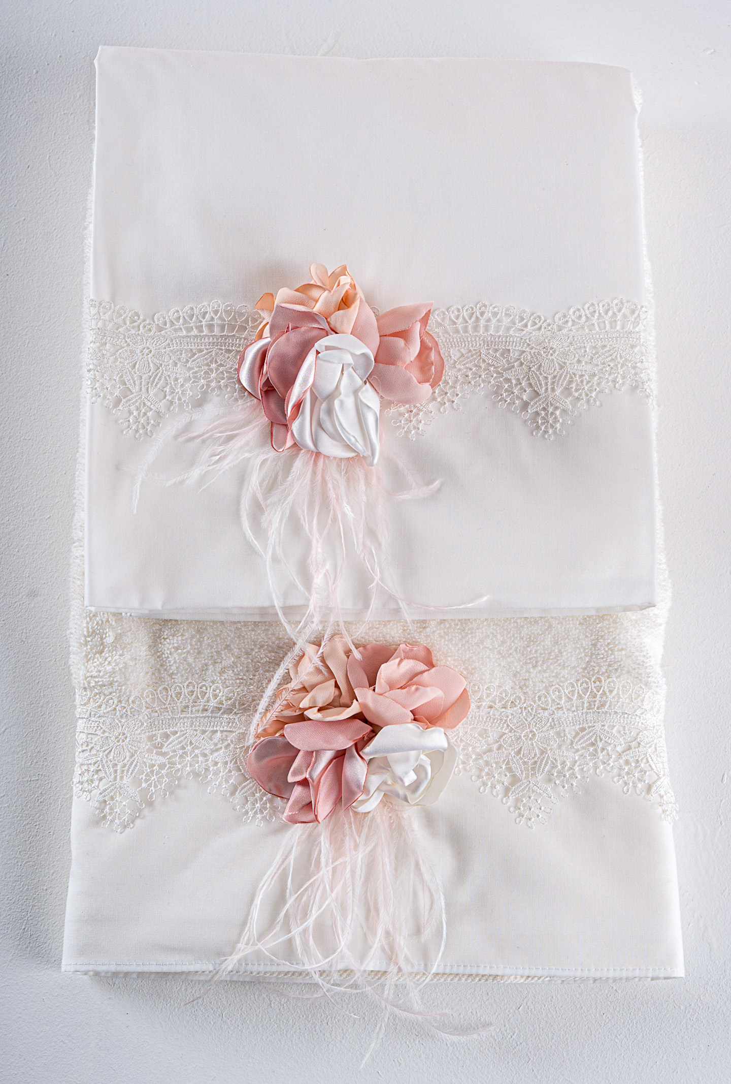 Σετ λαδόπανα Piccolino. Αποτελείται απο βαμβακερό λαδόπανο, πετσέτα 140*70εκ, εσώρουχα και πετσέτα ιερέα 30*50εκ. Στολισμένα με χειροποίητα υφασμάτινα λουλούδια.