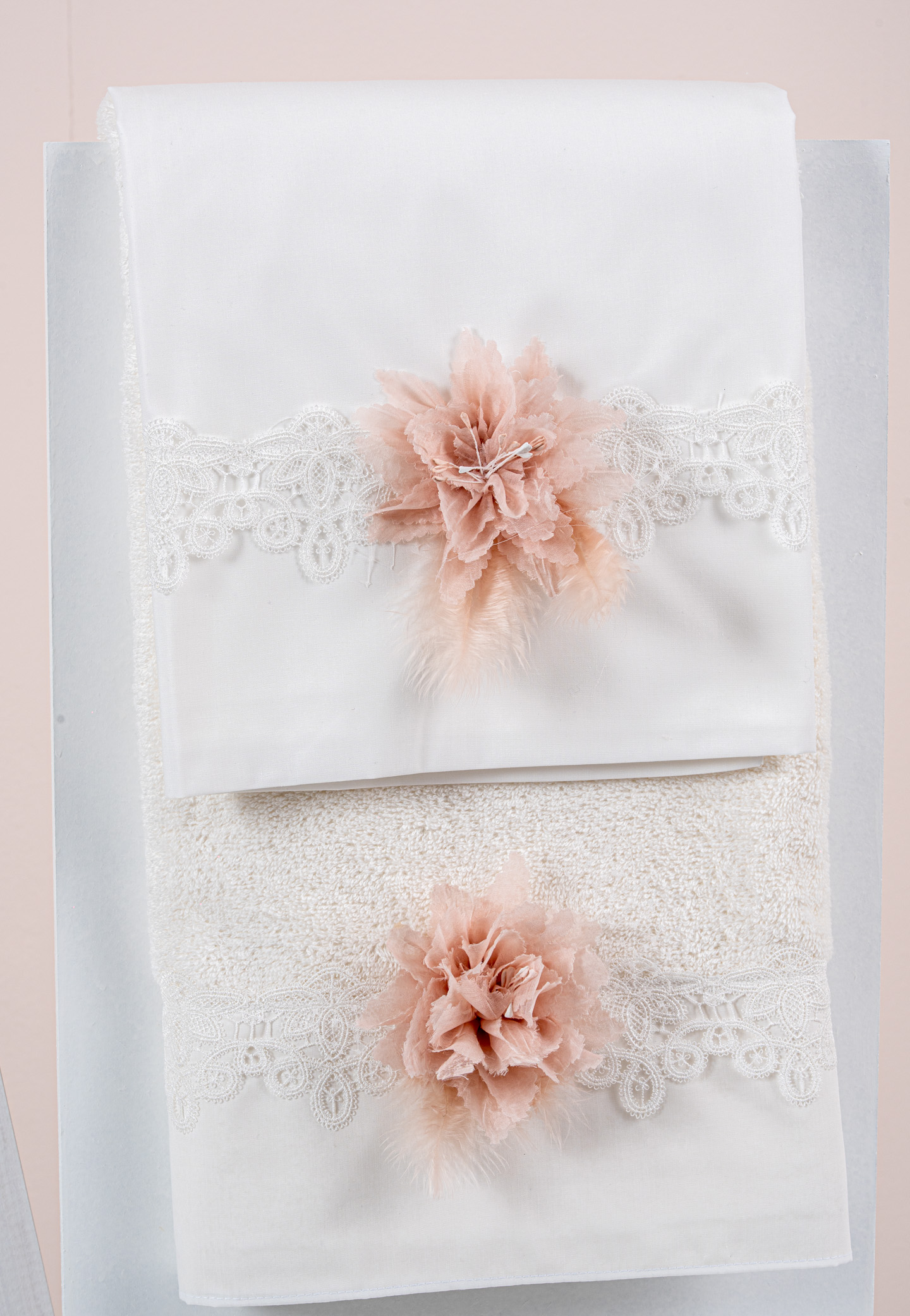 Σετ λαδόπανα Piccolino. Αποτελείται απο βαμβακερό λαδόπανο, πετσέτα 140*70εκ, εσώρουχα και πετσέτα ιερέα 30*50εκ. Στολισμένα με χειροποίητα υφασμάτινα λουλούδια.