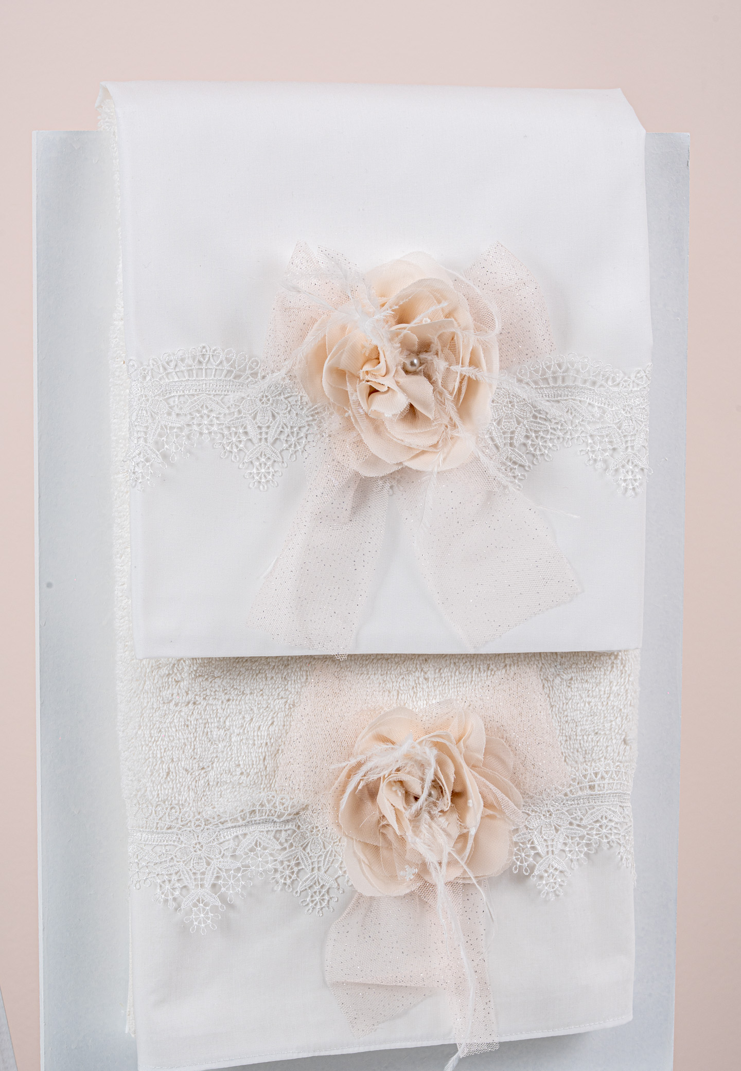 Σετ λαδόπανα Piccolino. Αποτελείται απο βαμβακερό λαδόπανο, πετσέτα 140*70εκ, εσώρουχα και πετσέτα ιερέα 30*50εκ. Στολισμένα με χειροποίητα υφασμάτινα λουλούδια.