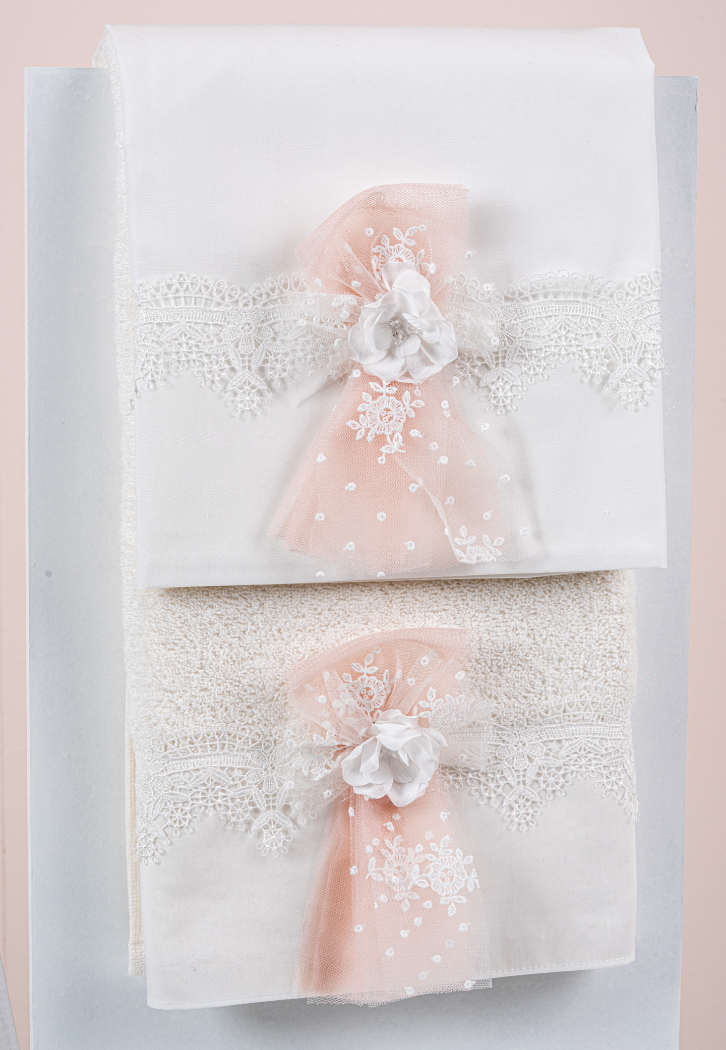 Σετ λαδόπανα Piccolino. Αποτελείται απο βαμβακερό λαδόπανο, πετσέτα 140*70εκ, εσώρουχα και πετσέτα ιερέα 30*50εκ. Στολισμένα με χειροποίητα υφασμάτινα λουλούδια.