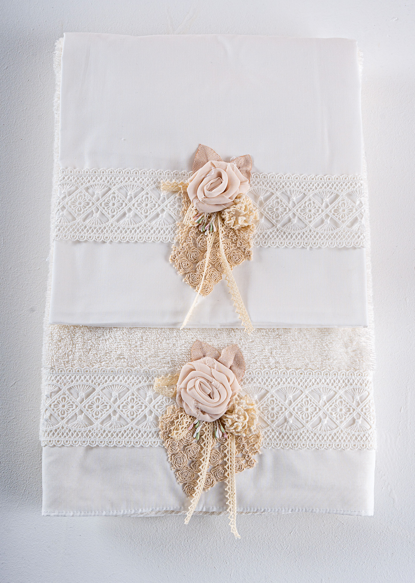 Σετ λαδόπανα Piccolino. Αποτελείται απο βαμβακερό λαδόπανο, πετσέτα 140*70εκ, εσώρουχα και πετσέτα ιερέα 30*50εκ. Στολισμένα με χειροποίητα υφασμάτινα λουλούδια.