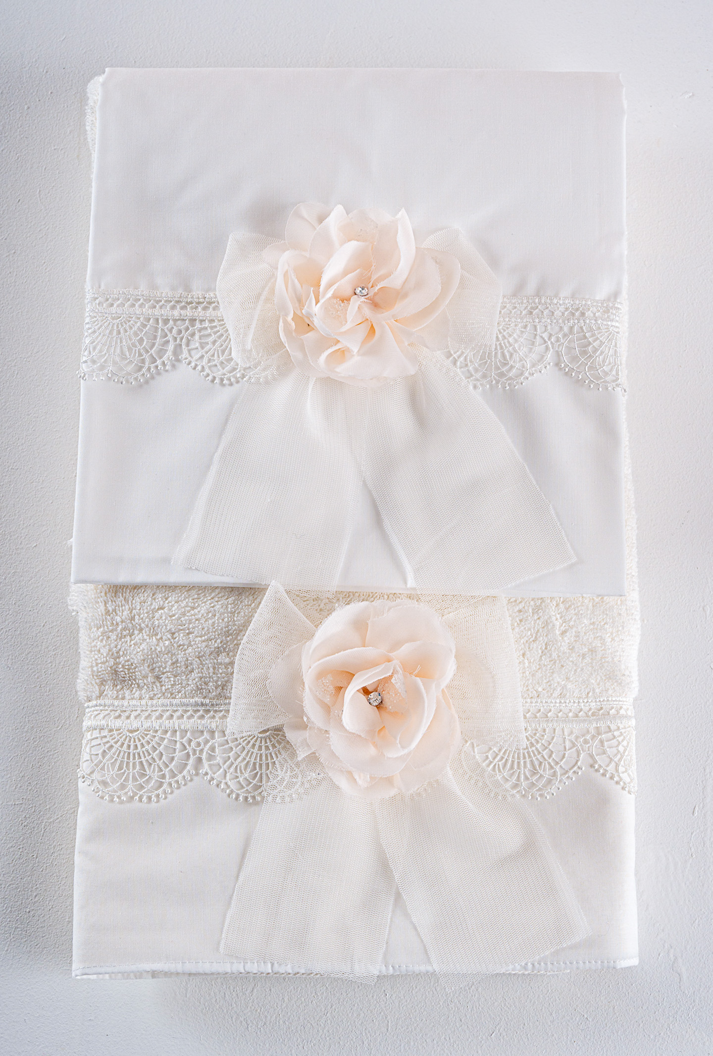Σετ λαδόπανα Piccolino. Αποτελείται απο βαμβακερό λαδόπανο, πετσέτα 140*70εκ, εσώρουχα και πετσέτα ιερέα 30*50εκ. Στολισμένα με χειροποίητα υφασμάτινα λουλούδια.