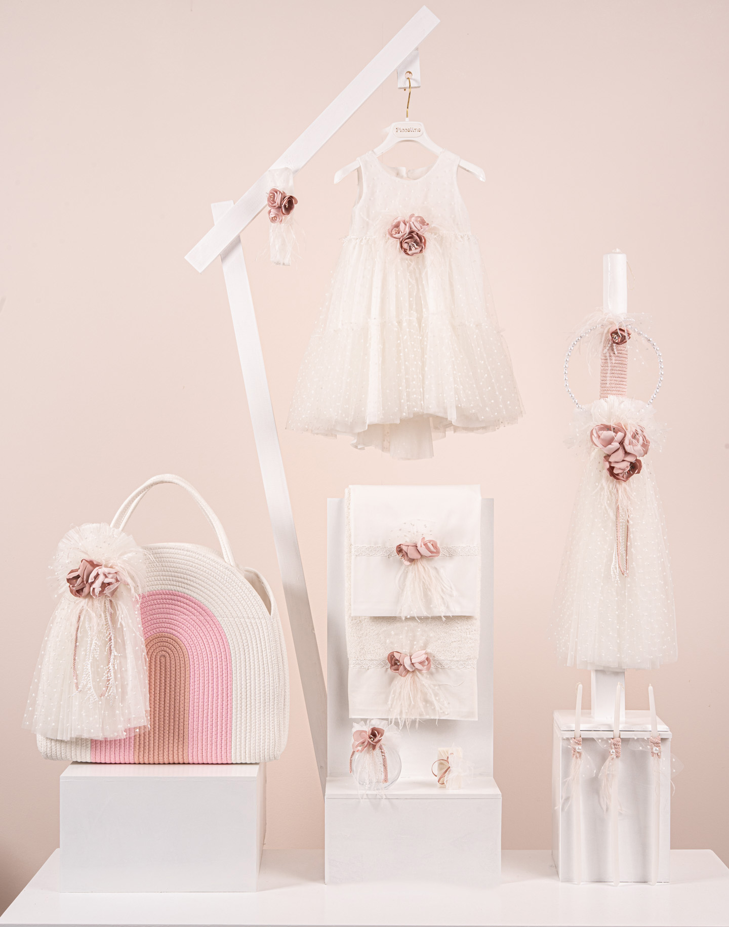 Βαπτιστικό πακέτο Piccolino Luna ivory περιλαμβάνει φόρεμα ,σετ λαδόπανα, λαμπάδα, λαδοσετ και στολισμένη τσάντα ropes