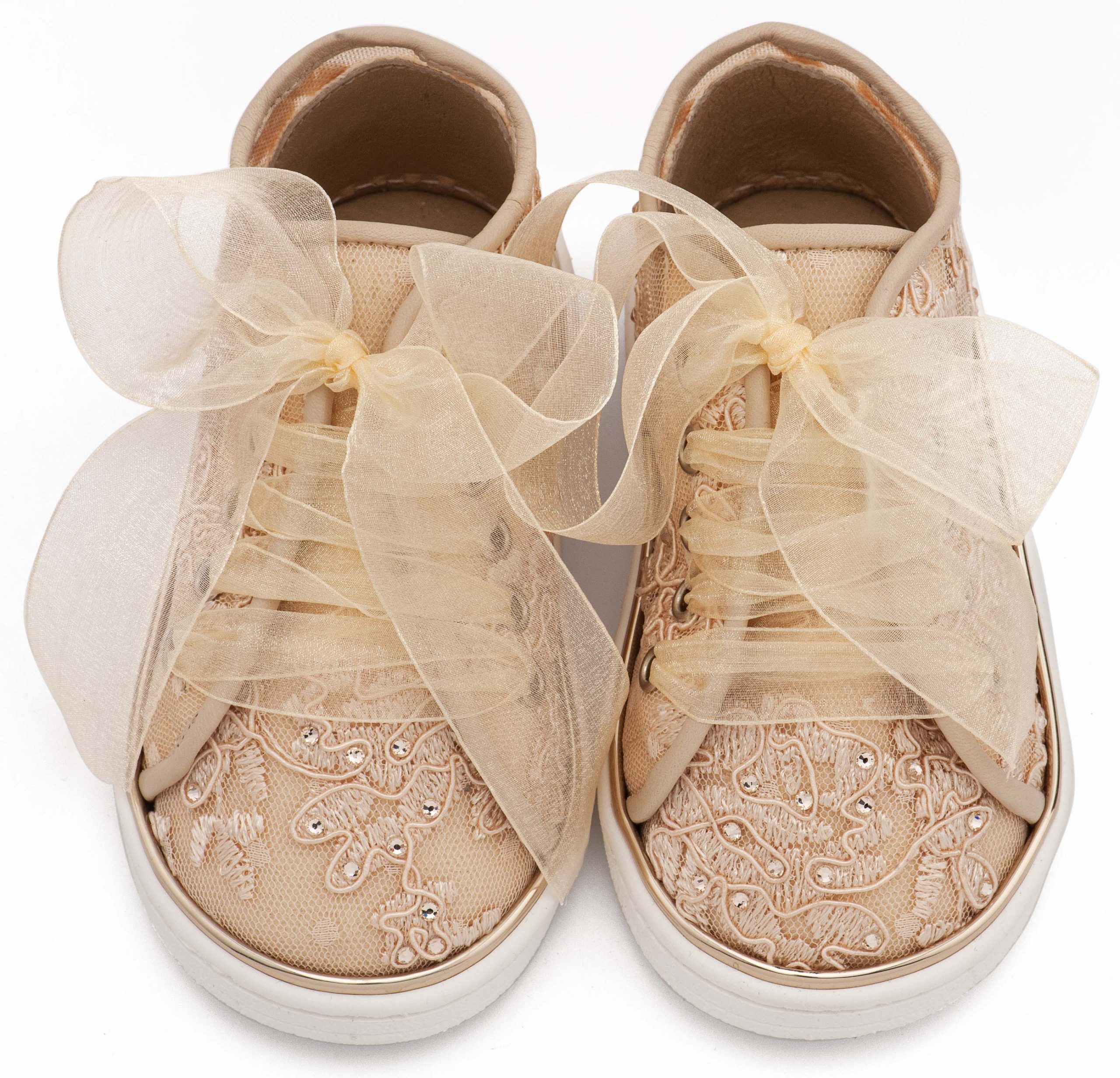 Sneaker απο Ύφασμα Φιλντιρέ Λουλούδια με Δερμάτινες Λεπτομέρειες και Chiffon Κορδόνι σε Μπεζ Χρώμα
