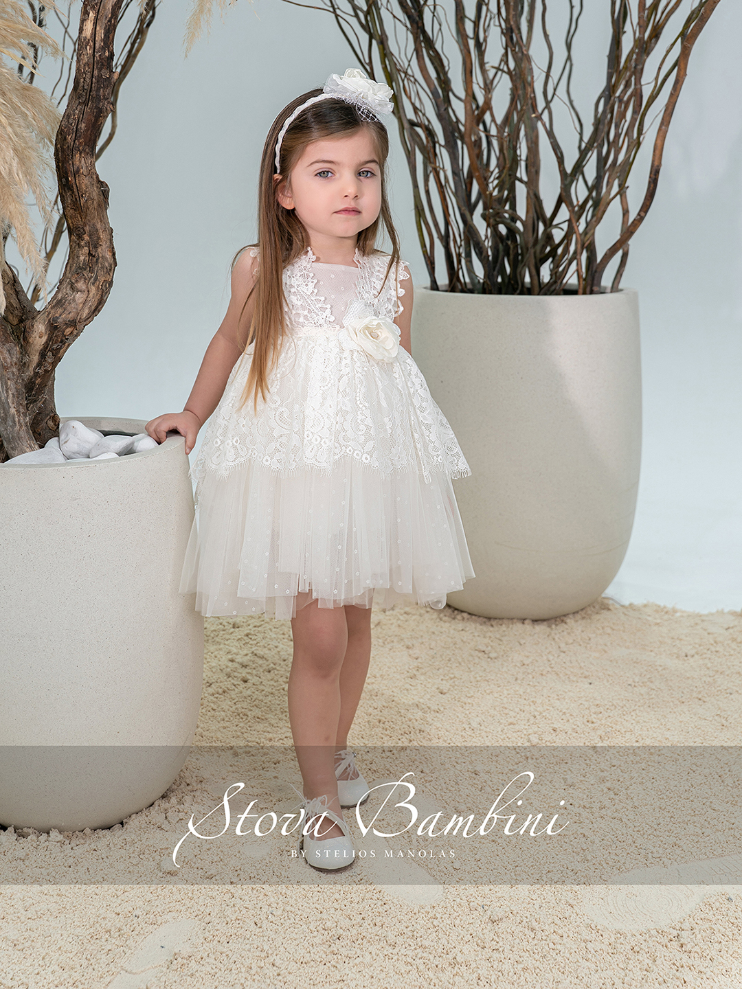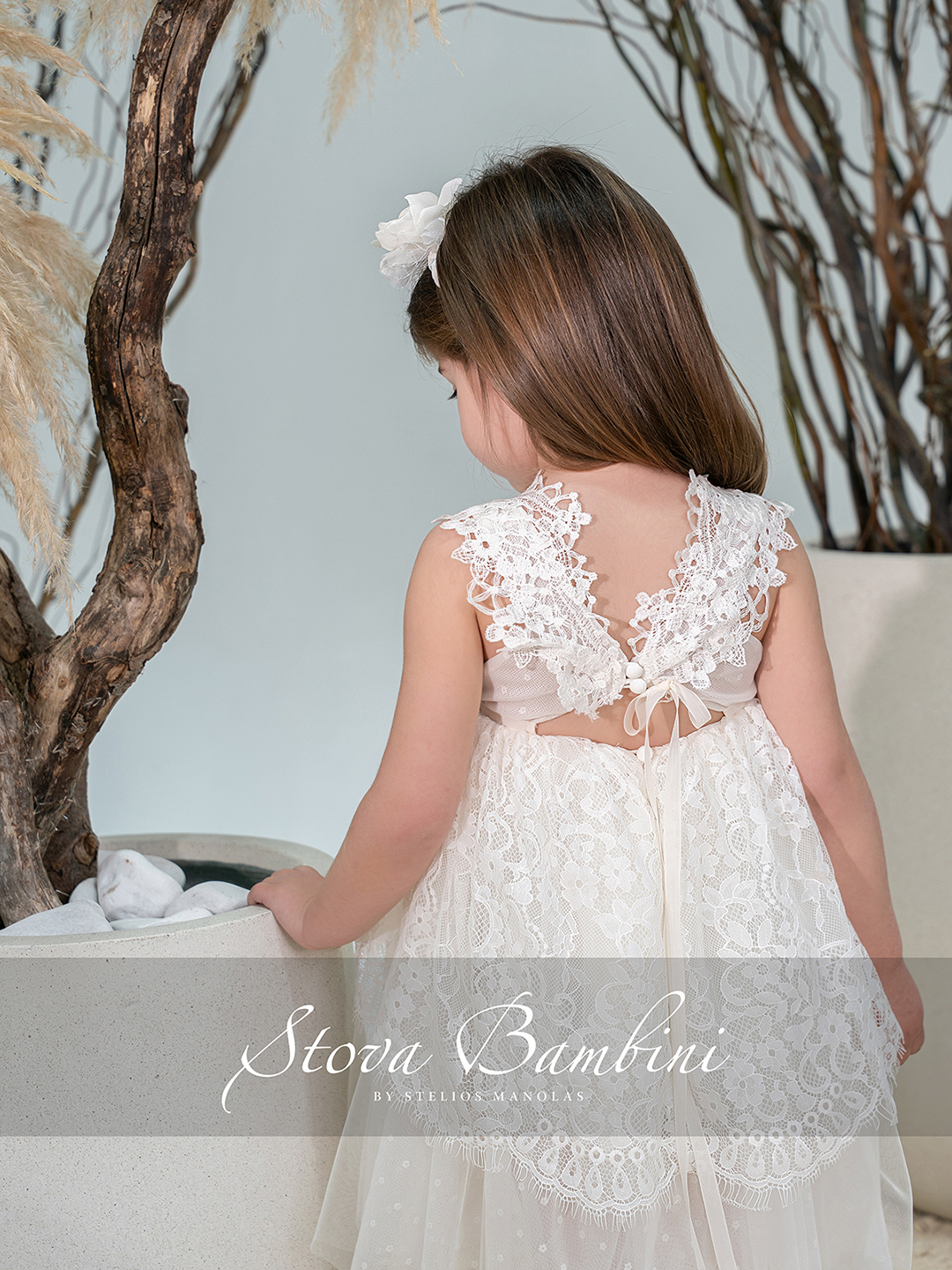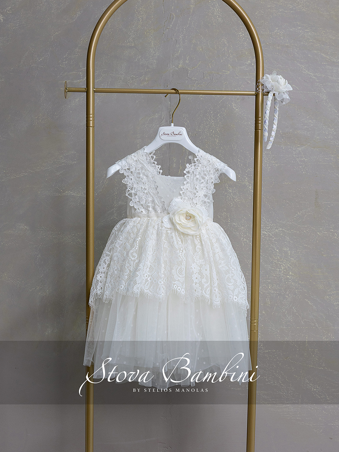 Εκλεπτυσμένο και διαχρονικά κομψό φόρεμα σε φίνα ivory απόχρωση, που ξεχωρίζει για την ιδιαίτερη υφή και τη λεπτομέρειά του. Το μπούστο από περίτεχνη δαντέλα Ιταλίας με διακριτικές διαφάνειες αναδεικνύει με μοναδικό τρόπο το σχέδιο, ενώ οι εντυπωσιακές δαντελένιες τιράντες προσθέτουν μία αίσθηση υψηλής αισθητικής. Η φούστα από πλούσια δαντέλα του επώνυμου Γαλλικού Οίκου Sophie Hallette σε συνδυασμό με ανάλαφρο τούλι Ισπανίας, δημιουργεί ένα αέρινο αποτέλεσμα με όμορφη κίνηση και βάθος. Η ζώνη στη μέση ολοκληρώνεται με ένα εντυπωσιακό χειροποίητο λουλούδι, προσθέτοντας μία φίνα και διακριτική πινελιά πολυτέλειας στο σύνολο. Η πλάτη με τα κουμπάκια και το κομψό δέσιμο ενισχύει τον εκλεπτυσμένο χαρακτήρα του φορέματος, χαρίζοντας μία ολοκληρωμένη εικόνα υψηλής ραπτικής. Όλα τα φορέματα διαθέτουν εσωτερική επένδυση 100% Cotton για απόλυτη άνεση.