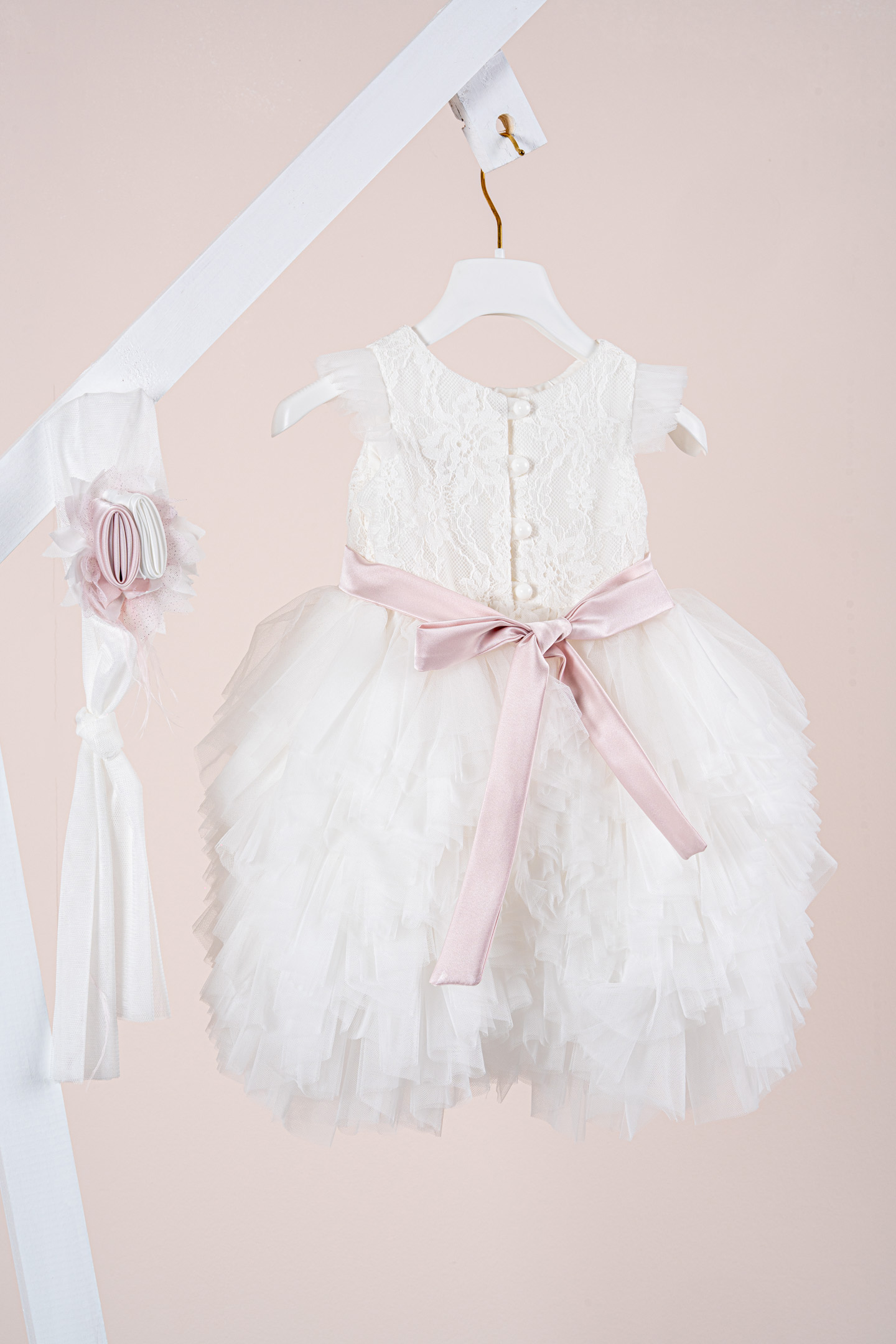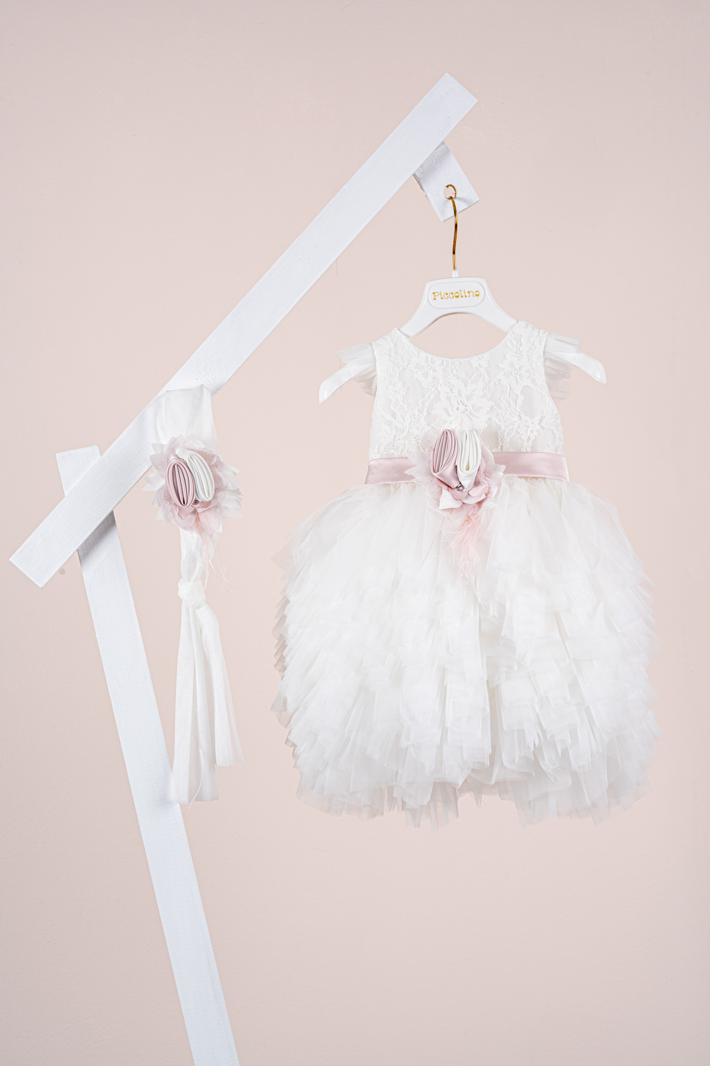 Βαπτιστικό φόρεμα Piccolino Ornella Ivory. Μεσάτο φόρεμα με τούλινο μανικάκι . Μπούστο με δαντέλα, στο φόρεμα ξεχωρίζει η εντυπωσιακή του ασσύμετρη τούλινη φούστα με τα πολλά διαφορετικά της επίπεδα. Το ντεκόρ του φορέματος αποτελείται από σατέν ζωνάκι που καταλήγει σε φιογκάκι στο πίσω μέρος, χειροποίητα λουλούδια και πούπουλα μαραμπού. Το φόρεμα συνοδέυεται απο μπαντάνα με ντεκόρ όμοιο με το φόρεμα. Διαθέσιμο σε 4 μεγέθη: 6-12, 12-18, 18-24, 24-36(εξτρά χρέωση)