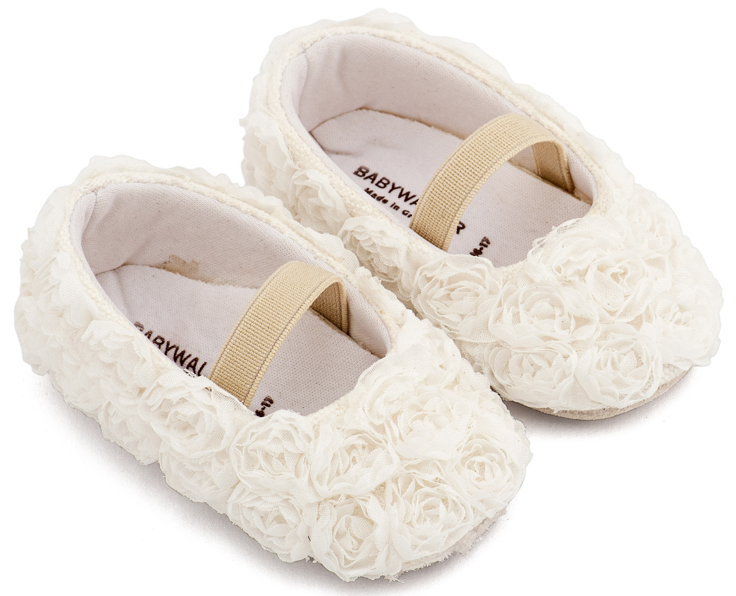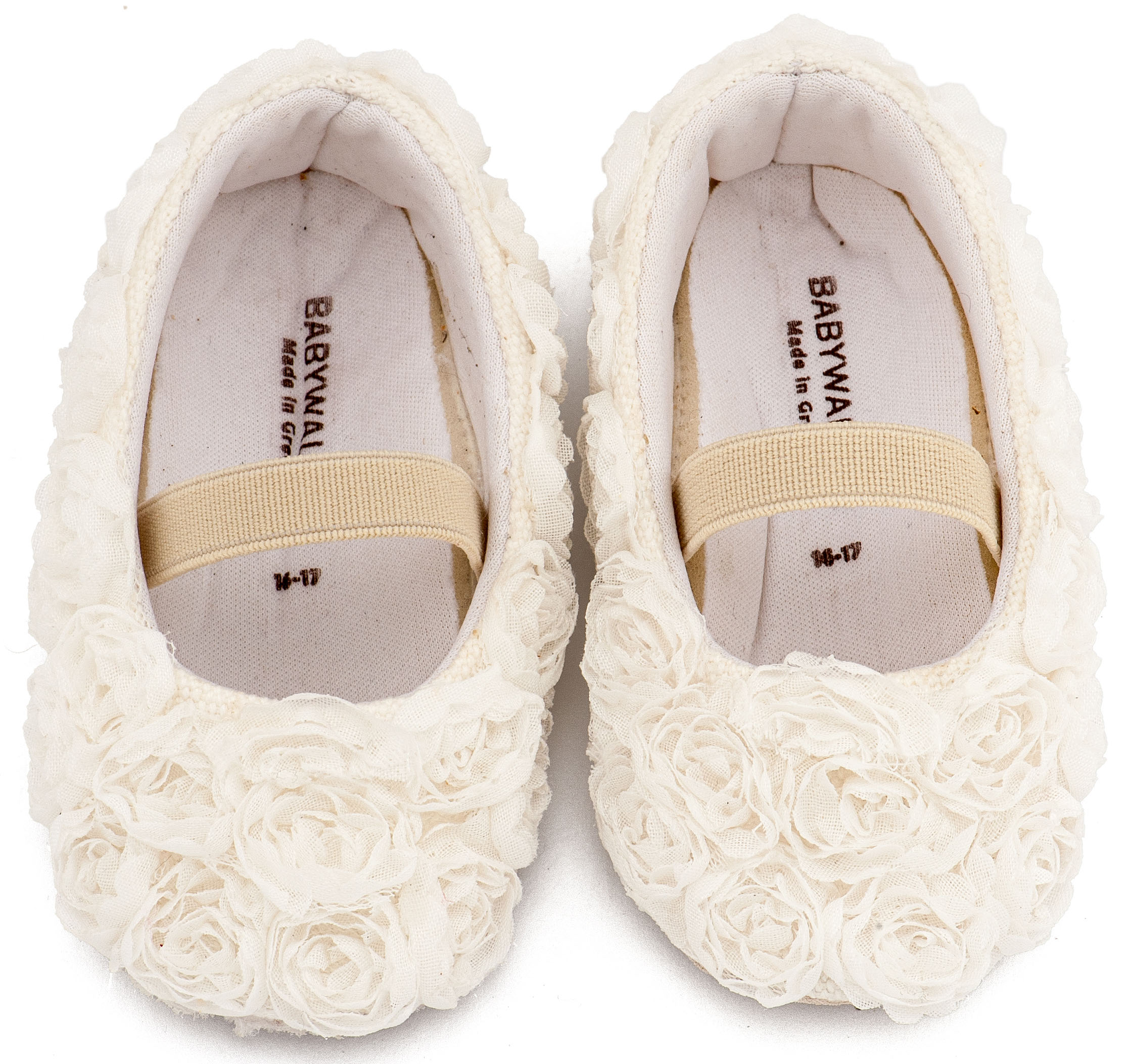 Υφασμάτινη Μπαλαρινα Διακοσμημένη με Chiffon Λουλούδια Λευκό Χρώμα