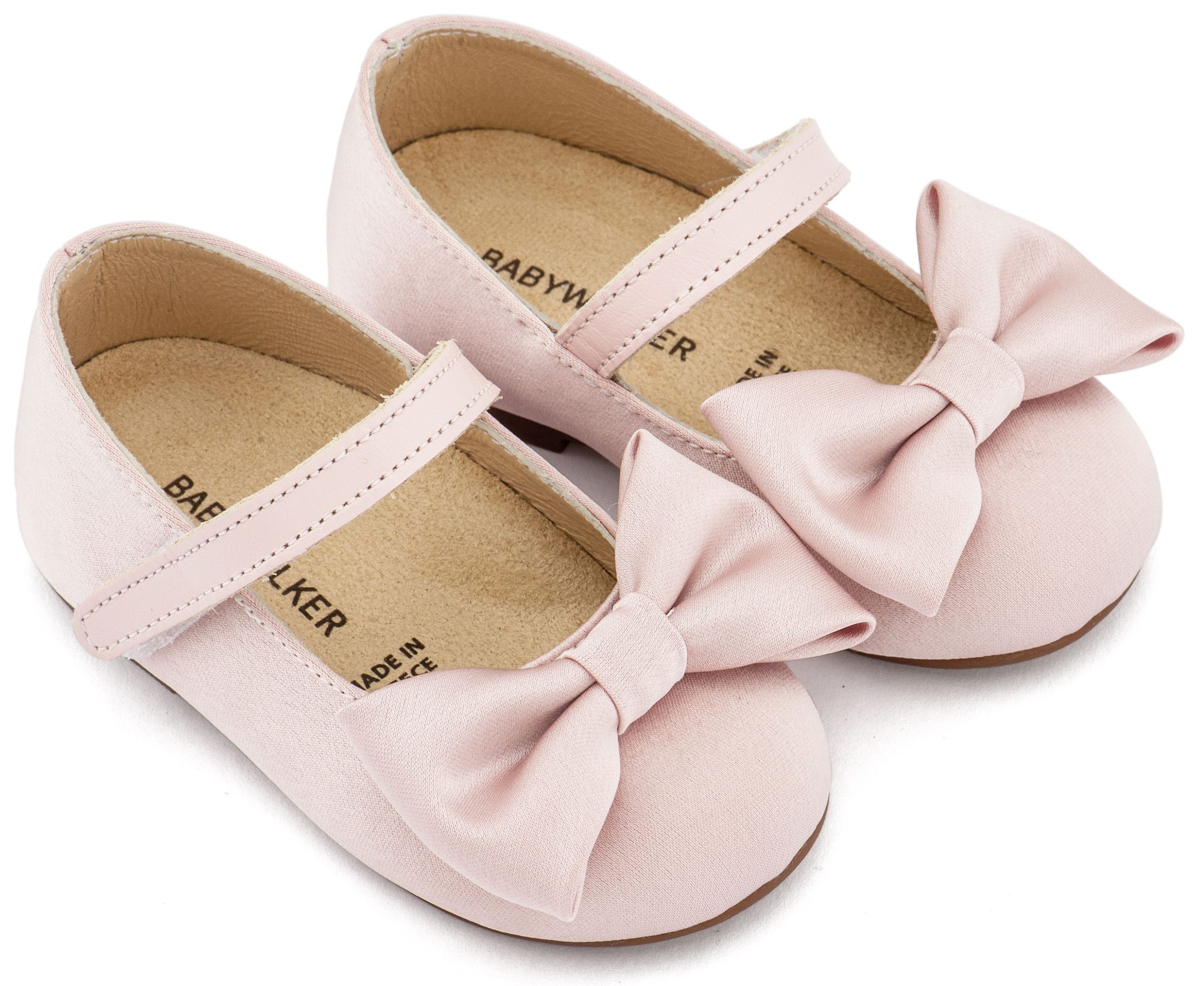 Δερμάτινο Γοβάκι Μονή Μπαρέτα με Υφασμάτινο Χειροποίητο Φιογκάκι σε Εκρού Ροζ Χρώμα